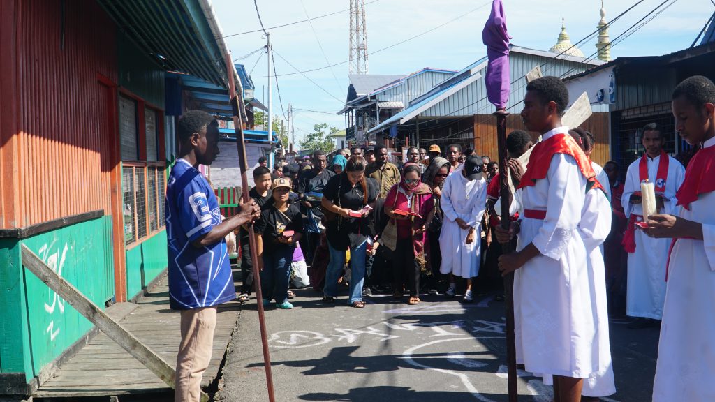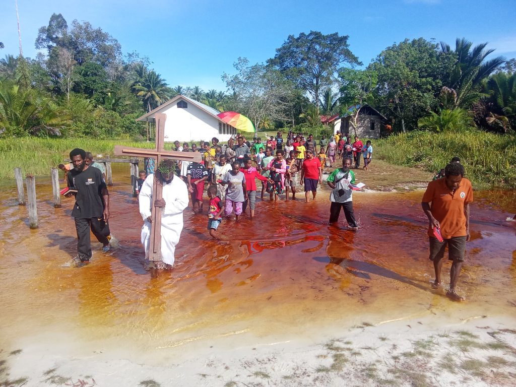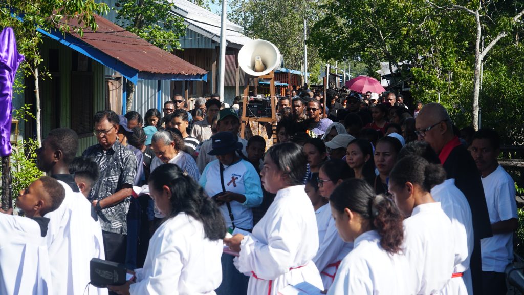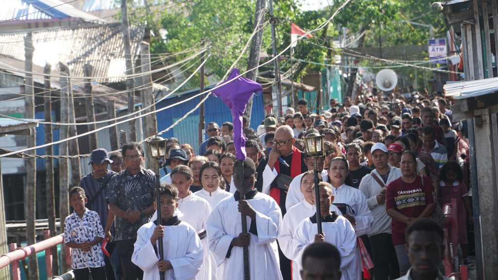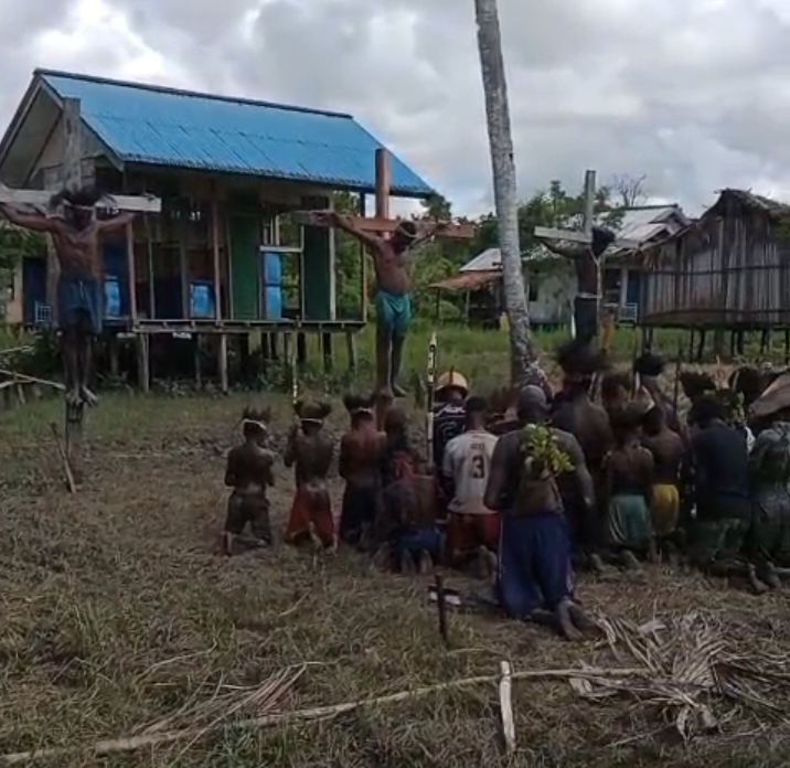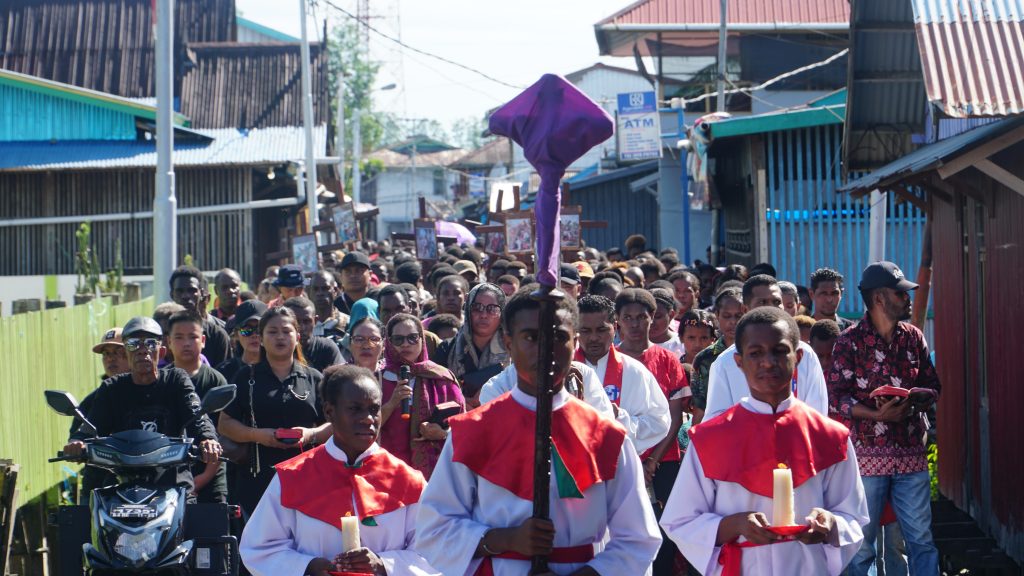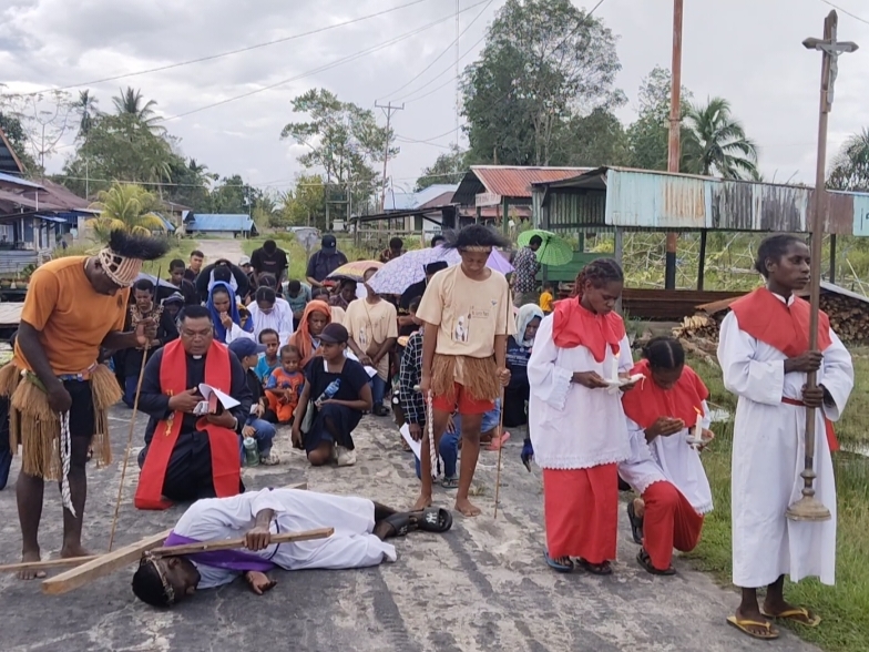 KOMSOS – Umat Katolik di berbagai paroki dan stasi di Keuskupan Agats mengikuti prosesi Jalan Salib pada Jumat Agung dengan penuh iman dan penghayatan. Kegiatan ini menjadi momen penting untuk mengenang dan merenungkan sengsara serta wafat Yesus Kristus.