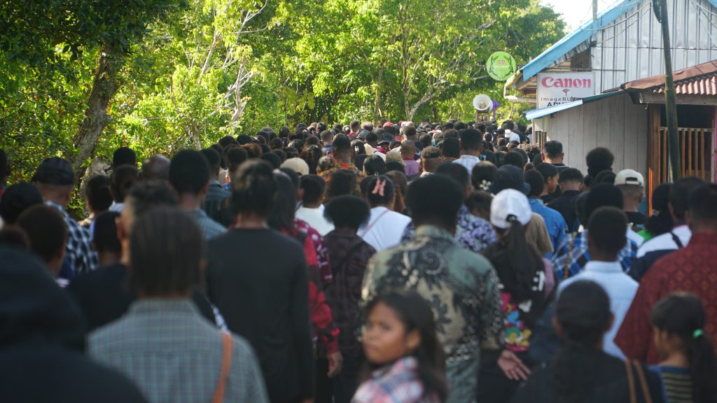 Meskipun dihadapkan pada kondisi medan yang tidak selalu mudah, seperti tanah berlumpur dan akses yang terbatas, semangat umat tidak surut. Kebersamaan dan kekhusyukan tetap terjaga sepanjang prosesi berlangsung.